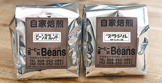 水戸市赤塚とひたちなか市東石川に店を構えるコーヒー豆専門店「コーヒー専科-BEANS(ビーンズ)」は、おすすめコーヒー豆を月替わりで特価販売。12月は、通常1458円の「ビーンズブレンド」(500g)=写真左=は896円、通常1096円の「ブラジル