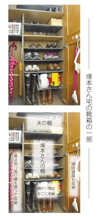 「玄関は家の“顔”。靴箱の中を見直すと、すっきりと気持ち良い空間になりますよ」とは、大子町出身で、整理収納アドバイザー、インテリアコーディネーターなどの資格を持つ塚本英代さん=写真右。塚本さん流靴箱整理術のポイントは5つだ。